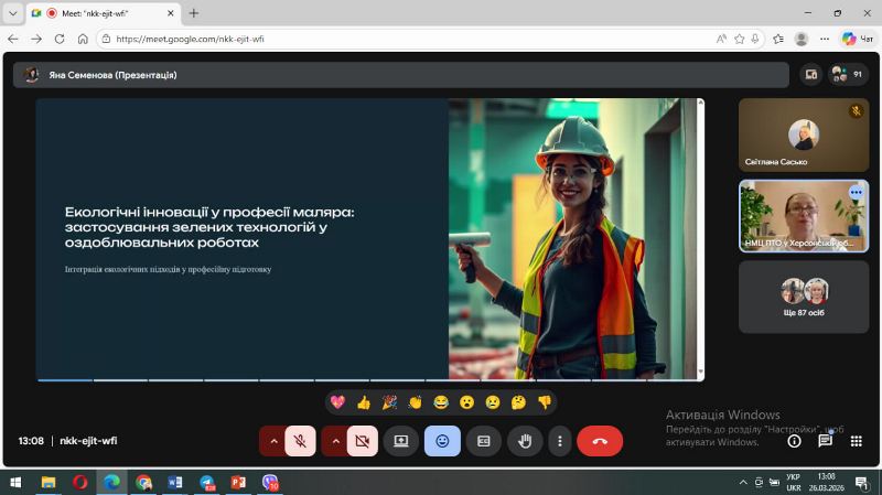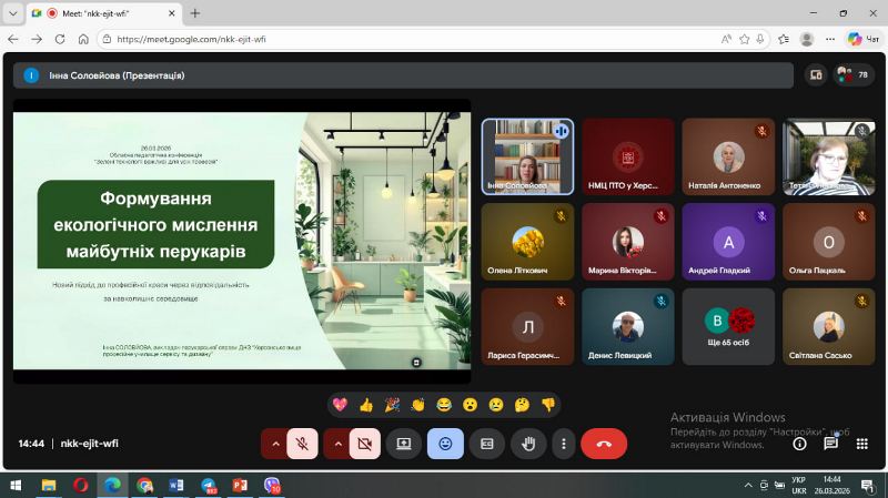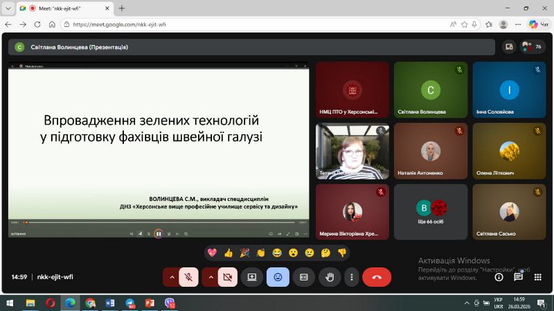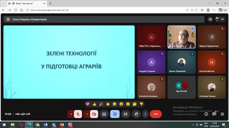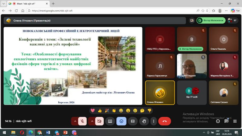 Відповідно до плану роботи Навчально-методичного центру професійно-технічної освіти у Херсонській області 26 березня 2026 року проведено онлайн педагогічну конференцію на тему: «Зелені технології важливі для всіх професій».